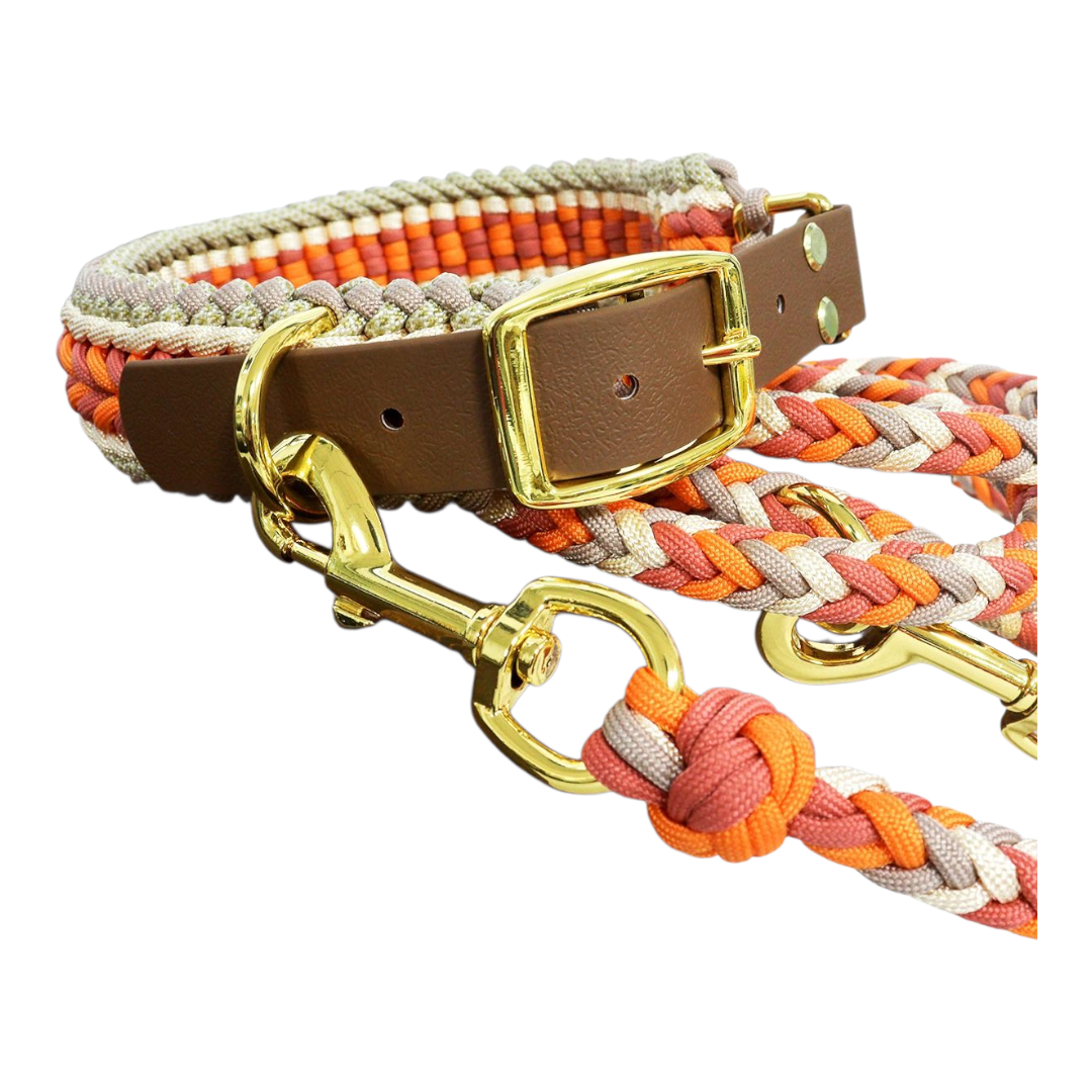 Mélange harmonieux de orange brûlé, cuivre, beige doré et taupe clair, pour un look à la fois chaleureux et raffiné — parfait pour l’automne ou pour les chiens au pelage doré, fauve ou brun.