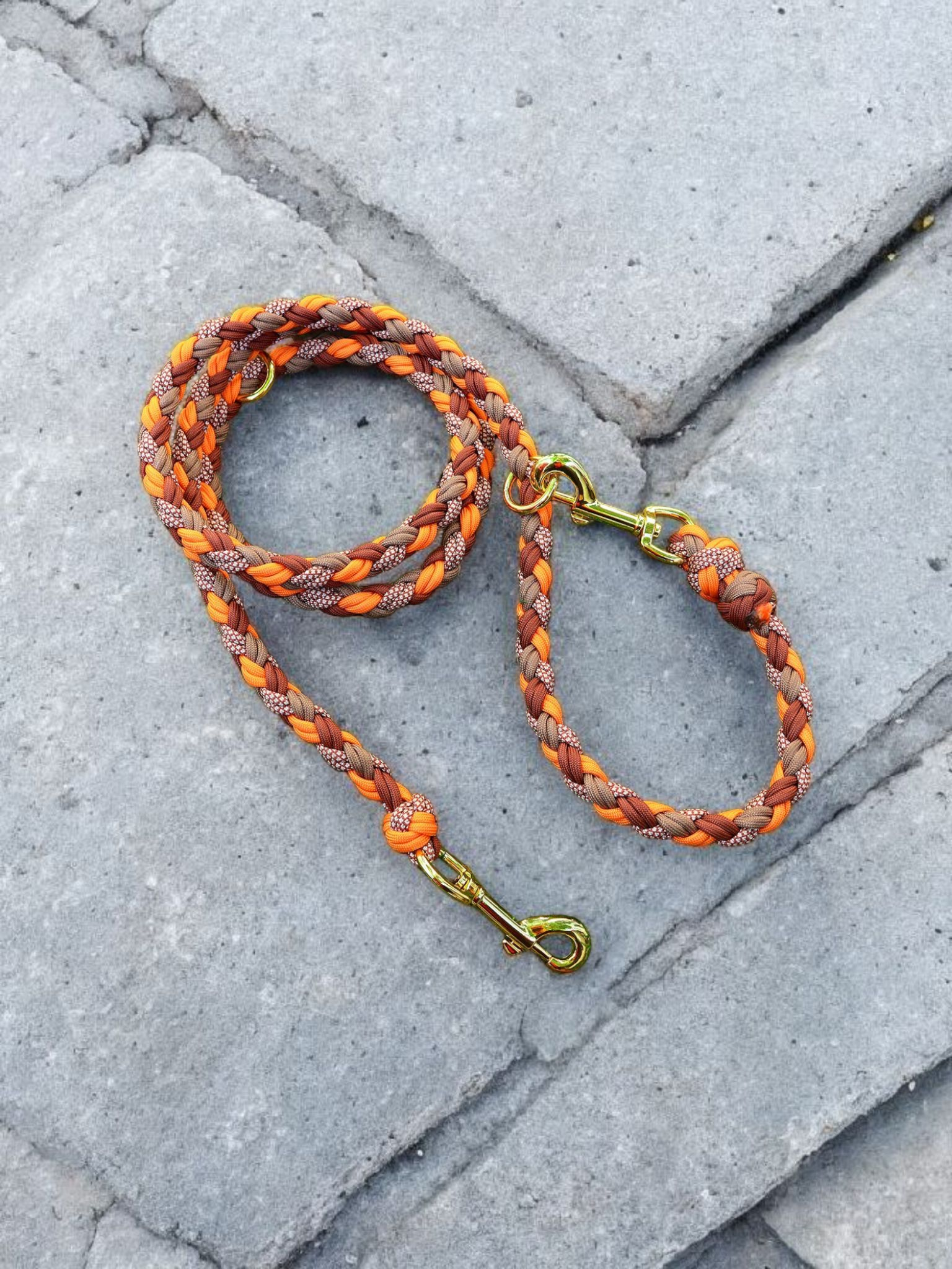 Cette laisse 3 points est fabriquée à la main en paracorde tressée, un matériau réputé pour sa solidité exceptionnelle et sa durabilité. Ses tons harmonieux de gris, orange et brun lui donnent un look naturel et original, parfait pour les balades en plein air.